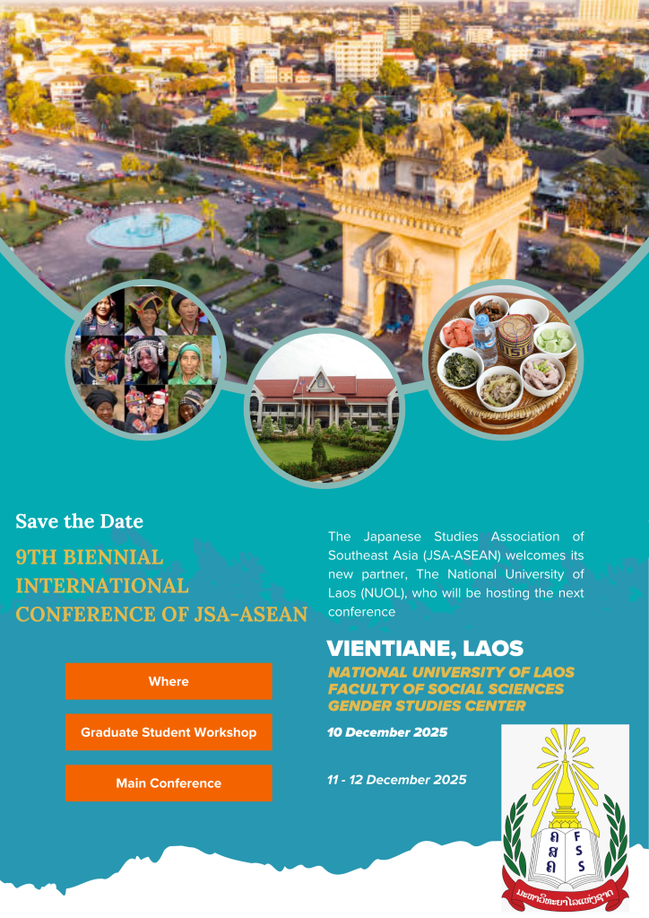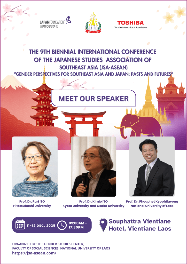 The Gender Studies Center, Faculty of Social Sciences, National University of Laos, is honored to host the 9th Biennial International Conference of the Japanese Studies Association of Southeast Asia (JSA–ASEAN) in Vientiane, Lao PDR.