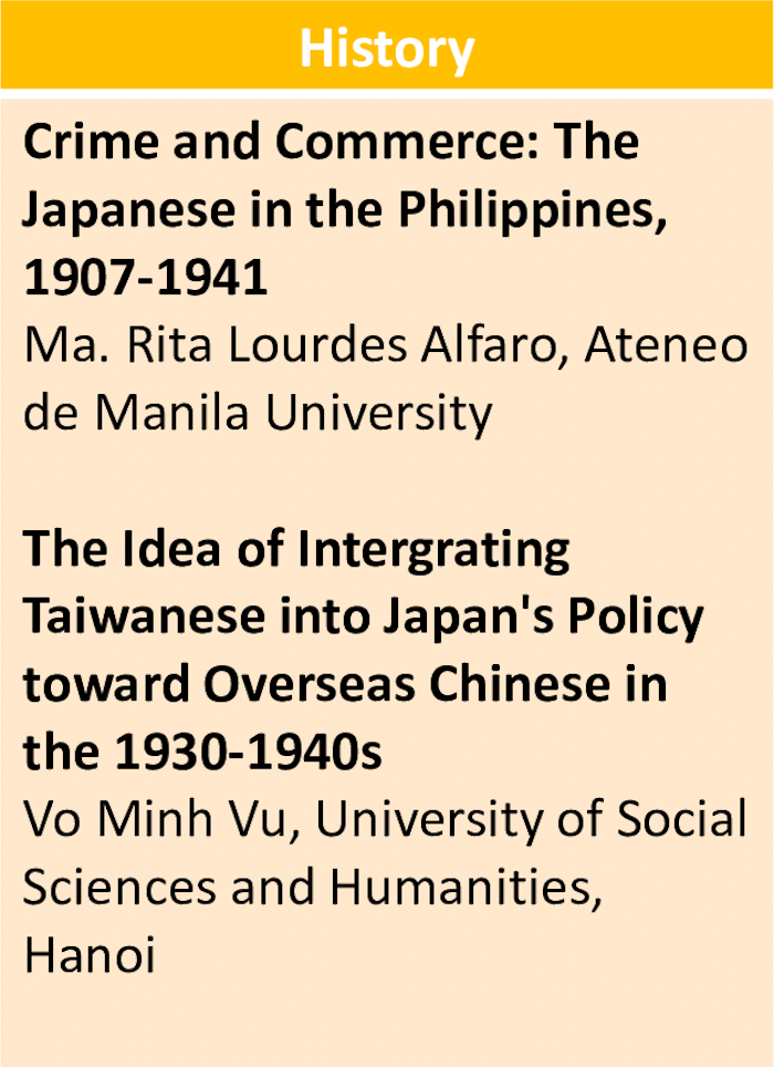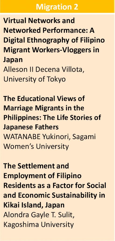 Day 3: 1:00 pm – 3:00 pm Click on the panels to access the abstracts, zoom links are found at the bottom of each panel Hosted by DLSU – Department of International Studies Recorded Session Hosted by UP – Diliman Asian Center (Please Register) Recorded Session Hosted by ADMU – Japanese Studies Program Zoom Link Meeting Id: 814 2917 0461Password: 040202 Hosted by ADMU – Japanese Studies Program Recorded Session Share this: Click to share on X (Opens in new window) X Click to share on Facebook (Opens in new window) Facebook Like Loading...